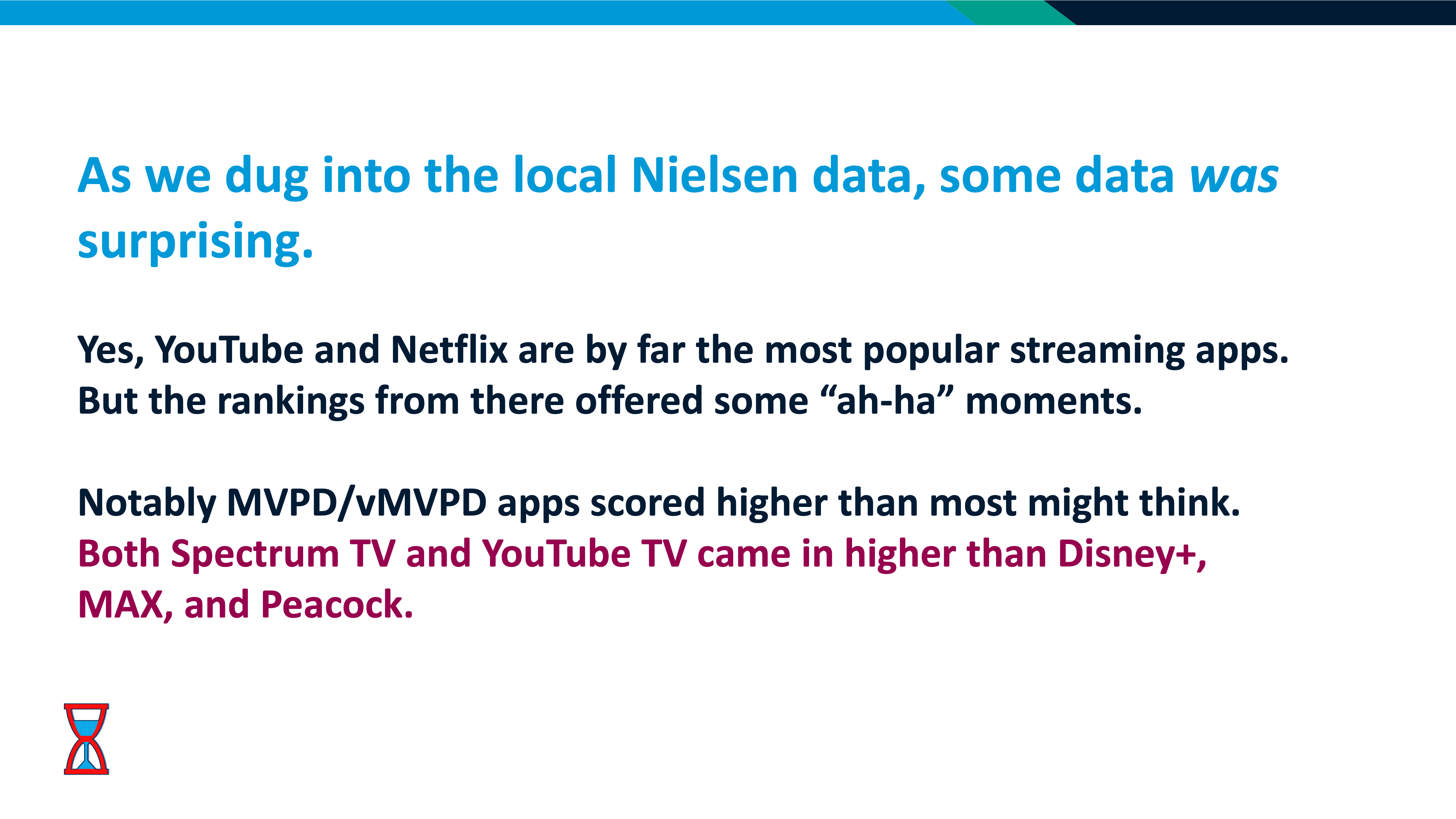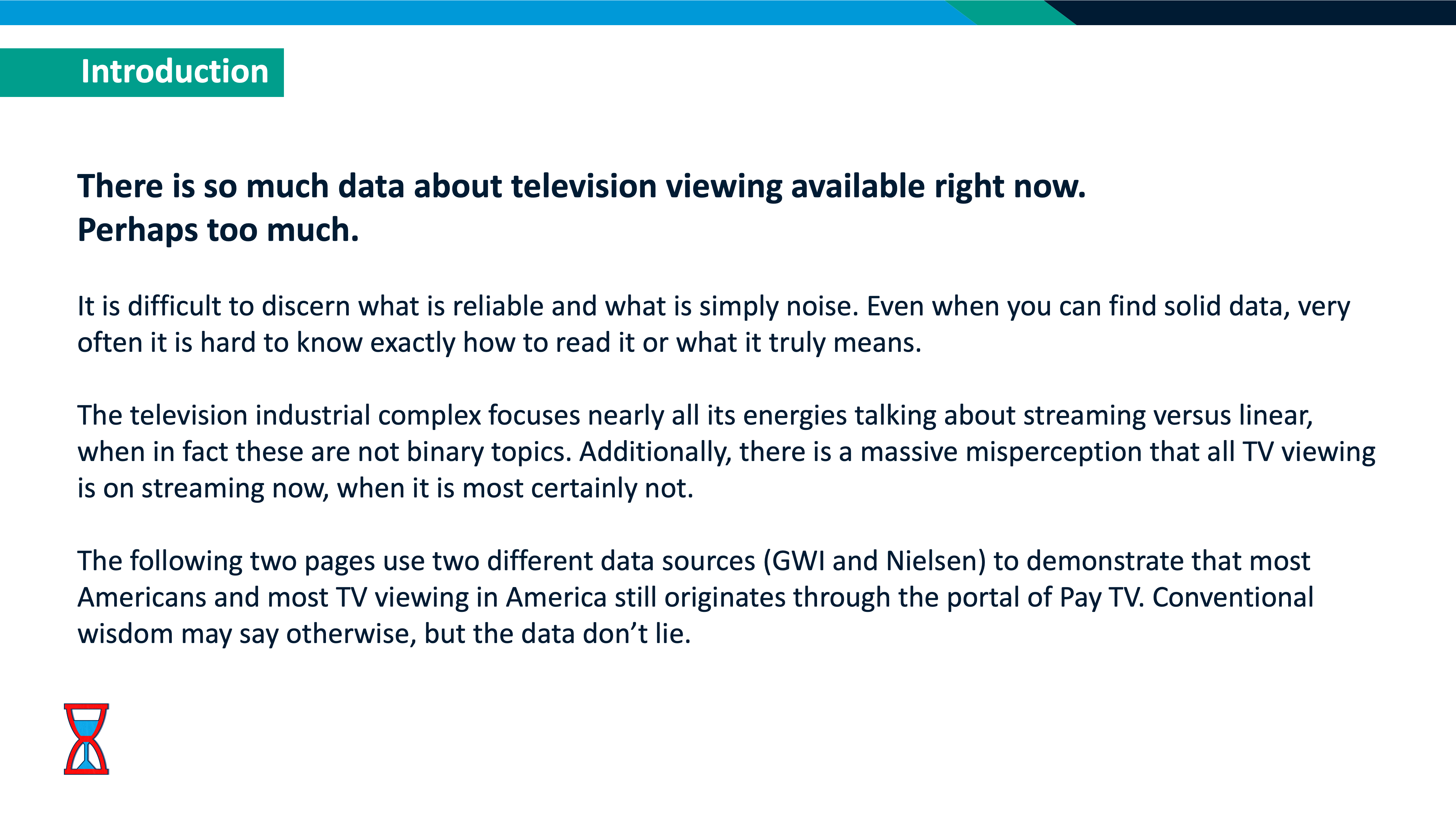 The entire report is more than worth your time and modest investment; Evan even provided a way for non-subscribers to download it. But as the “cool kids” struggle for survivial with consistently rising prices, pivoting content strategies and “alliances” amongst them which are effectively mini-versions of what we 20th century relics used to call “bundles”, it’s fascinating to see how much catch-up they’re playing with a world that already has embraced the option of choice and easier navigation.