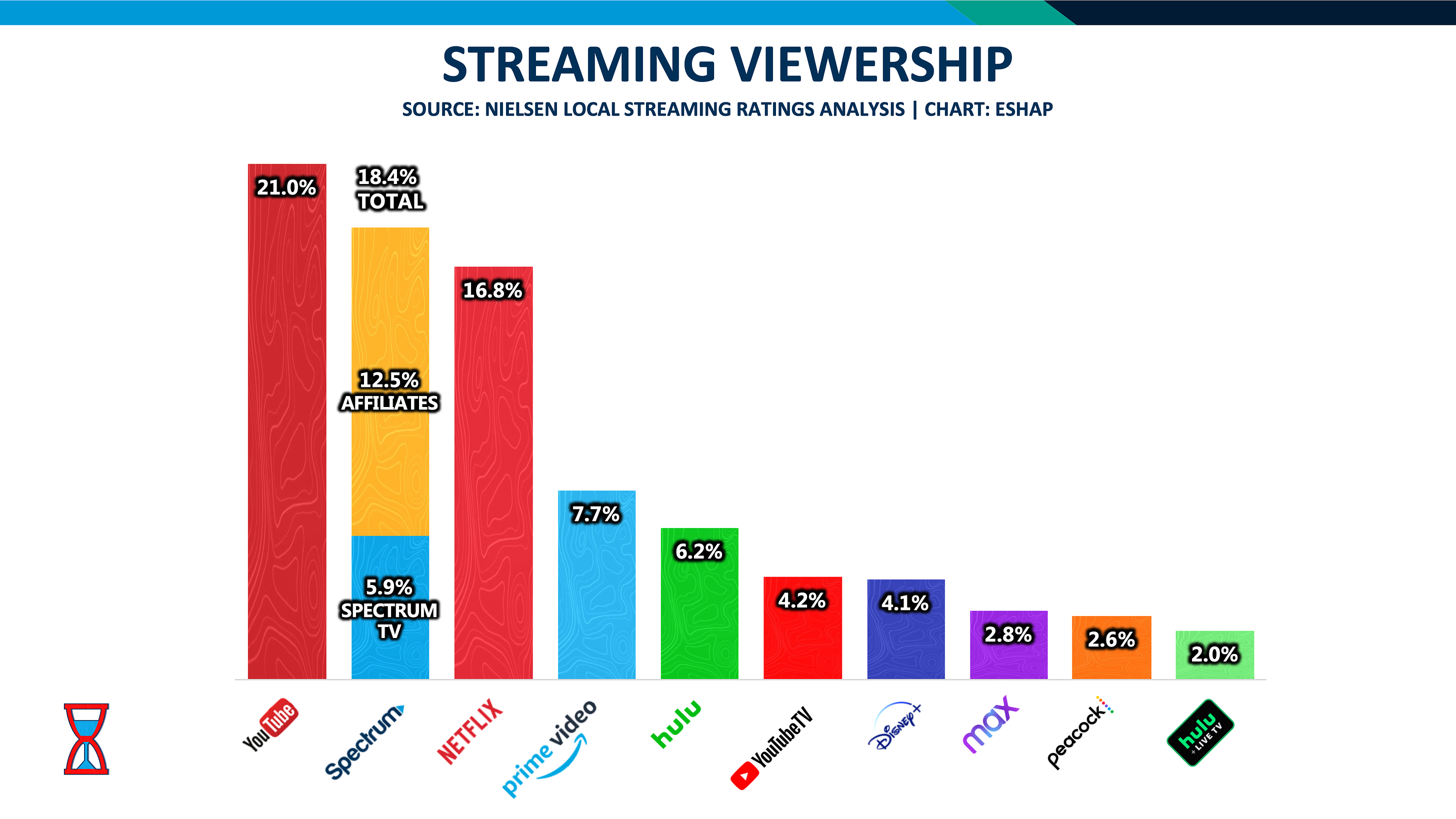From there, he took the accurate premise that despite the noise, people still watch more broadcast and cable TV than they do streaming services. And the broadcast sector in particular is local. So the premise of using the Spectrum footprint, which encompasses 22 major markets including New York and Los Angeles, is sound. And as he typically does, he uncovered some uncomfortable but undeniable truths:
