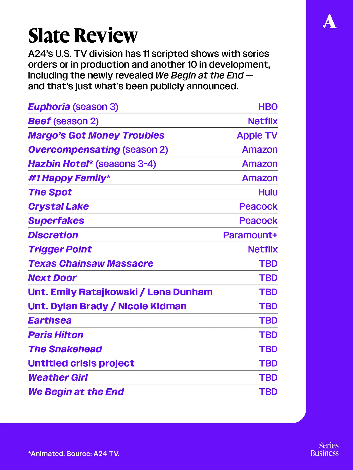 In an industry where projects can take months — even years — to move from conversation to contract, that kind of speed isn’t just unusual. It’s increasingly the way to win.  Though its reputation was built on its film darling bona fides, A24 has quietly become one of the most aggressive — and disruptive — players in the television business, pairing lightning-fast dealmaking with a willingness to spend when it matters. The result: a studio that agents love, creators prioritize and competitors are struggling to keep up with.