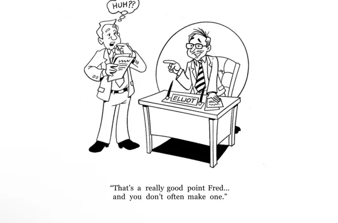 It’s a breezy and extremely quick read–in fact, it’s more accurately a “look”, given that the majority of the book is filled with the illustrations that his colleague Fred Bode provided. Michael Peikoff is indeed blessed to have someone with Bode’s talents as a co-author to best illustrate “Elliotisms” that sadly have no video and won’t ever be heard in their natural environment, as Elliott Peikoff passed nearly 20 years ago. I tried to get my trusty Copilot companion to develop something similar for one of mom’s more biting bon mots: