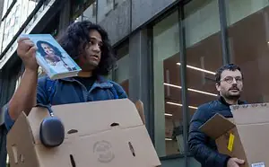 Both men carried boxes filled with office supplies. “Rahul,” who spelled his first and last names for the reporter, held a copy of Michelle Obama’s 2018 memoir, “Becoming,” while “Johnson” said he didn’t know how he’s would make payments on his Tesla, another tweet stated.