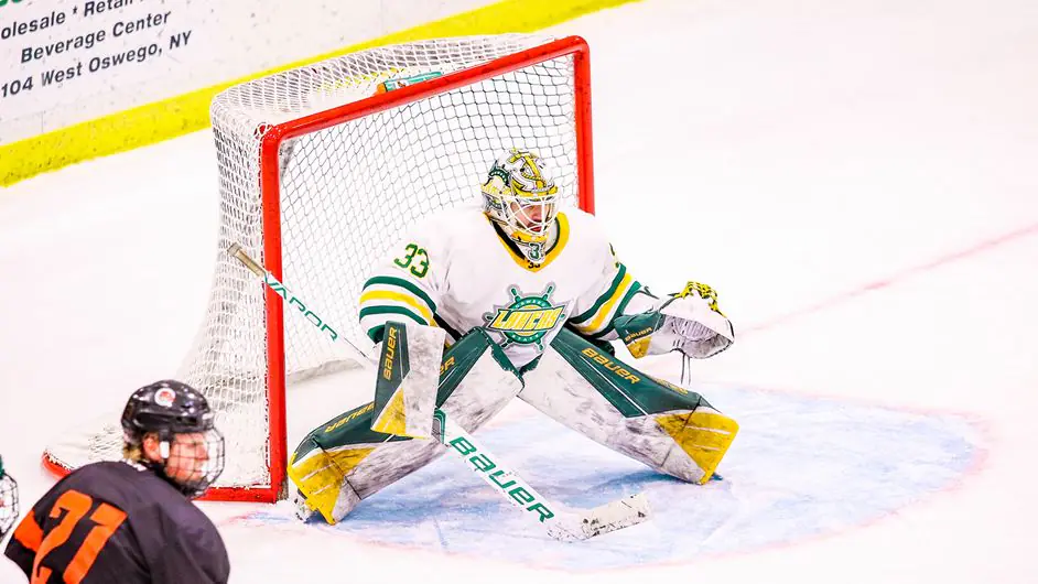 The Lakers are decided underdogs tonight.  Geneseo, 21-3-1. is a top three national program and defending conference champions.  The Lakers, 18-6-1 and not even in the Top Ten, lost two regular season games to them earlier this year.  This had been billed as a rebuilding year, with 21 new players (2020-21 was lost due to COVID) including many who had never played any college hockey at all.  Getting this far this year has been seen as a quite pleasant surprise.   A competitive loss to such a quality opponent may still qualify the Lakers for another NCAA tourney invite.