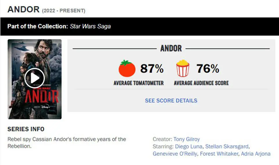 Andor is reviewing well so far, now that critic reviews have come in. Here’s how it stacks up compared to the other Disney Plus series we’ve seen out of the Star Wars universe so far: