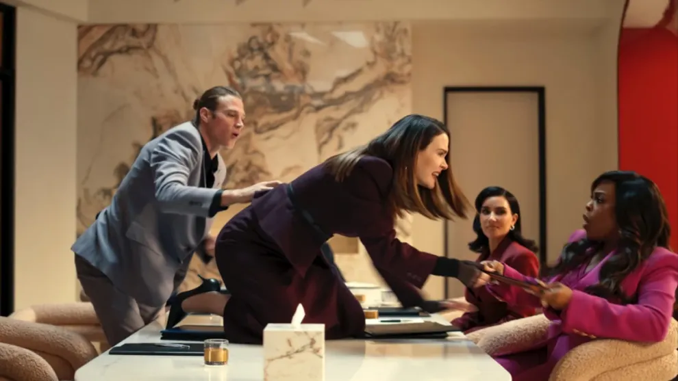 Is all of this what goes into a prestige drama? Hell no. But it is the kind of fodder that has been the backbone of the Kardashian-verse for more than two decades, stuff that made her entire family of male (and some female) fantasies literally keep E! in business longer than it otherwise might have and has now moved over to Hulu. Where several seasons of THE KARDASHIANS are housed and apparently get watched in the same sort of manner as I typically get my McDonald’s fix. If you know anything about how algorithms work, you know that’s literally teeing up ALL’S FAIR for sampling way better than even a free medium fries can induce the purchase of a McRib. Witness how Netflix was able to make SUITS a retro hit on their watch by feeding the ample viewership of HARRY AND MEGHAN into it. Anyone who could bear Miss Markle as an attorney could probably stomach Kardashian doing same.
