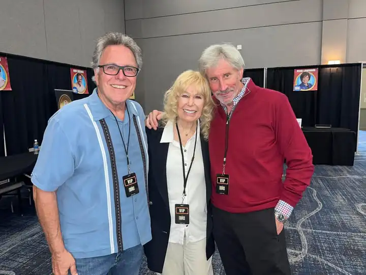 Swit joined her M*A*S*H co-star Jamie Farr at a booth at last year’s QUIZ SHOW EXPO in Burbank, a hybrid -con and industry business conference that sought to cash in on the memorialization of the anniversary of when TV’s acknowledged first quiz/game show, TRUTH OR CONSEQUENCES, premiered (June 1, 1941, for the trivia-conscious). Both of them, like most of the casts of hit network shows in the 70s, frequently were guest celebrities on the glut of titles that populated the daytime and non-network time periods of those networks; in fact, one of her classic winning bonus rounds on the OG $20,000 PYRAMID was repurposed by Comcast in an ad campaign hocking cable subscriptions in the early oughts. And aside from the obvious reasons why a young male would have been a fan, her connection to that and a show that provided me and especially my colleagues with professional rewards made her an especially appealing target for me to at least try and have a photo op with.