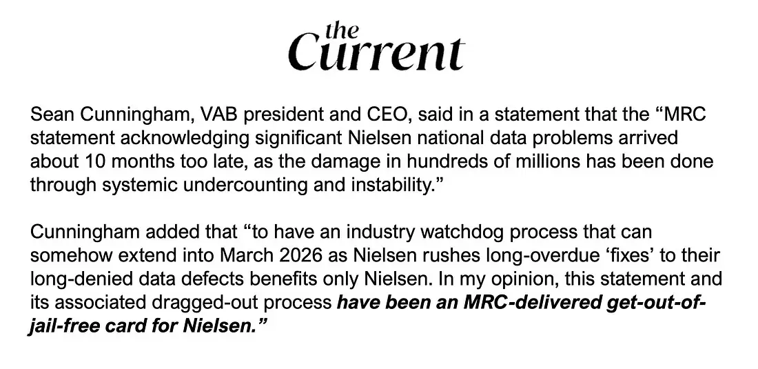 If this is who the Nielsen Company chose as their chief liaison at the very time they finally were moving into the 21st century, it more than supports the claims that are being expressed by the Video Advertising Bureau’s Sean Cunningham