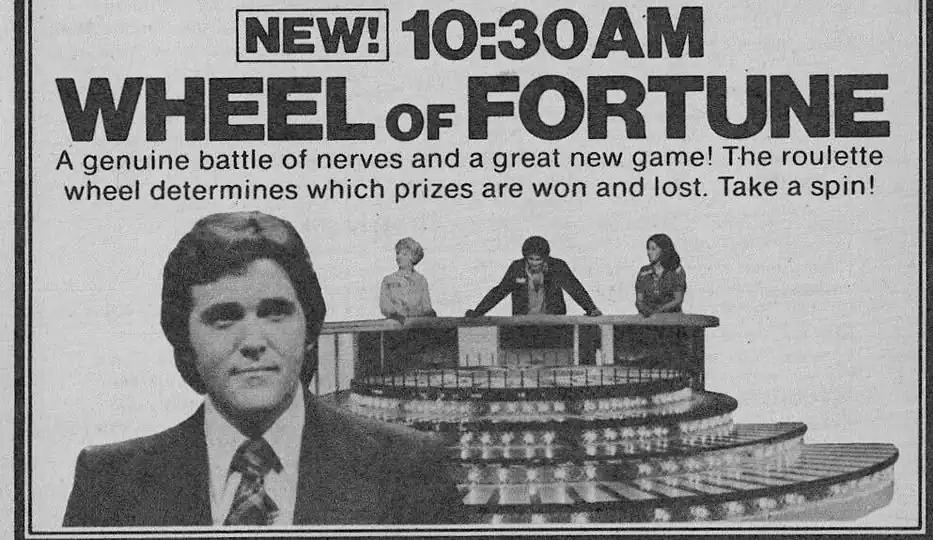 But as a rare nod of conciliation, as well as a fascination with a “young stud” host named Chuck Woolery who was attached, the network threw Griffin a conscilliatory order for this Burbank-based, tinsel and light box-studded show featuring a 1.2 ton roulette wheel so massive that it created arguably the most dangerous camera shot in industry history–a crane operator shooting from the top of the studio, perched precariously without any reasonable chance of a bathroom break. And thus began the life and daily habit of multiple generations called WHEEL OF FORTUNE.
