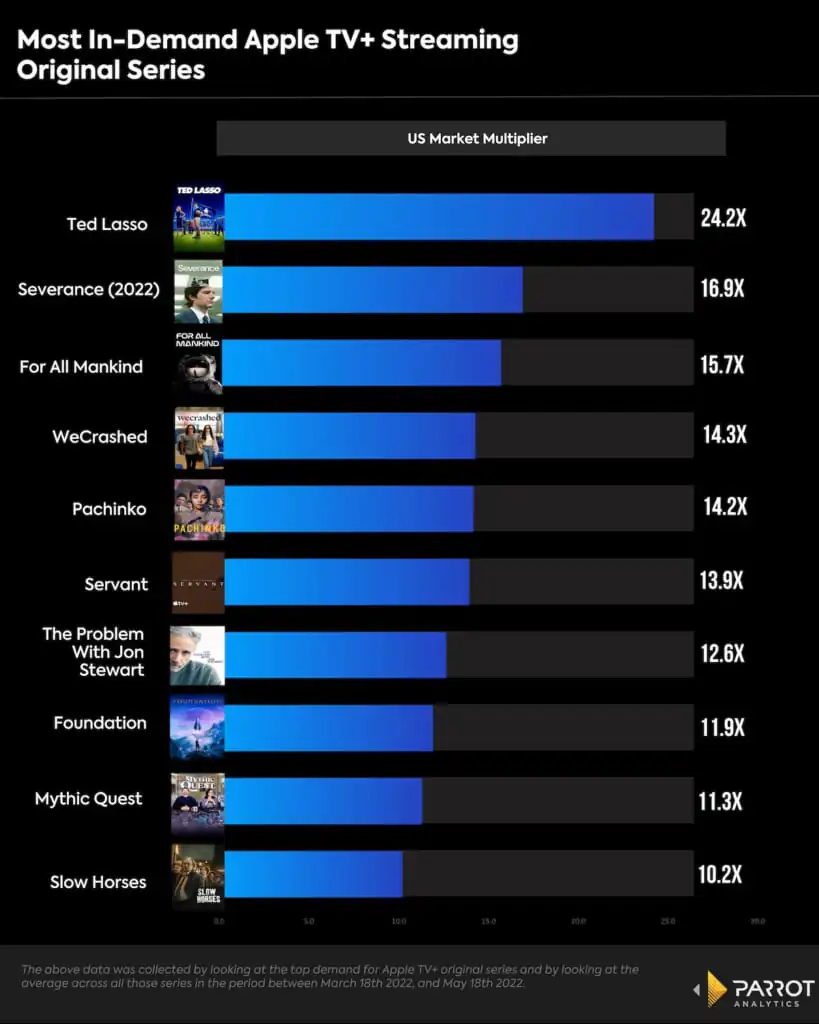 And yes, with the exception of the mini-series WeCrashed all of these Apple TV+ series have been renewed.  The issue is not in the what.  The issue I have is the WHY, and how Parrot uses their data to take credit  and how they choose to market it.