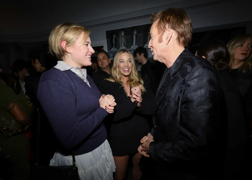 The guest list for the penthouse suite celebration included Margot Robbie, Nic Cage, Emma Stone, Jack Huston, Greta Gerwig, Gabrielle Union, Barry Keoghan, Taraji P. Henson, Danielle Brooks, Kaia Gerber, Addison Rae, James Marsden, Natasha Lyonne, Theo James, Hannah Einbinder, Andrew Scott, Colman Domingo and many more.