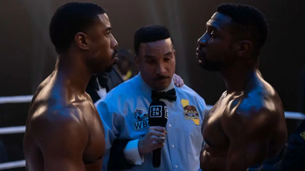 Not this time.  This time, much as the case was with the third installment of ROCKY, the third installment of CREED finds the titular character successful and evolved.  And much as the case was when Stallone found an even more imposing villain on the cusp of becoming a cultural icon (Mr. T. followed up his breakout role with a hugely popular role on one of NBC’s few hit shows of the early 80s, THE A-TEAM, and became a pop culture phenomenon), Jordan has tapped Jonathan Majors at the right time to play a complex and compelling new character.  As Peter Travers of ABC’s GOOD MORNING AMERICA explained, Jordan and Creed have once again found cinematic gold at the right time: