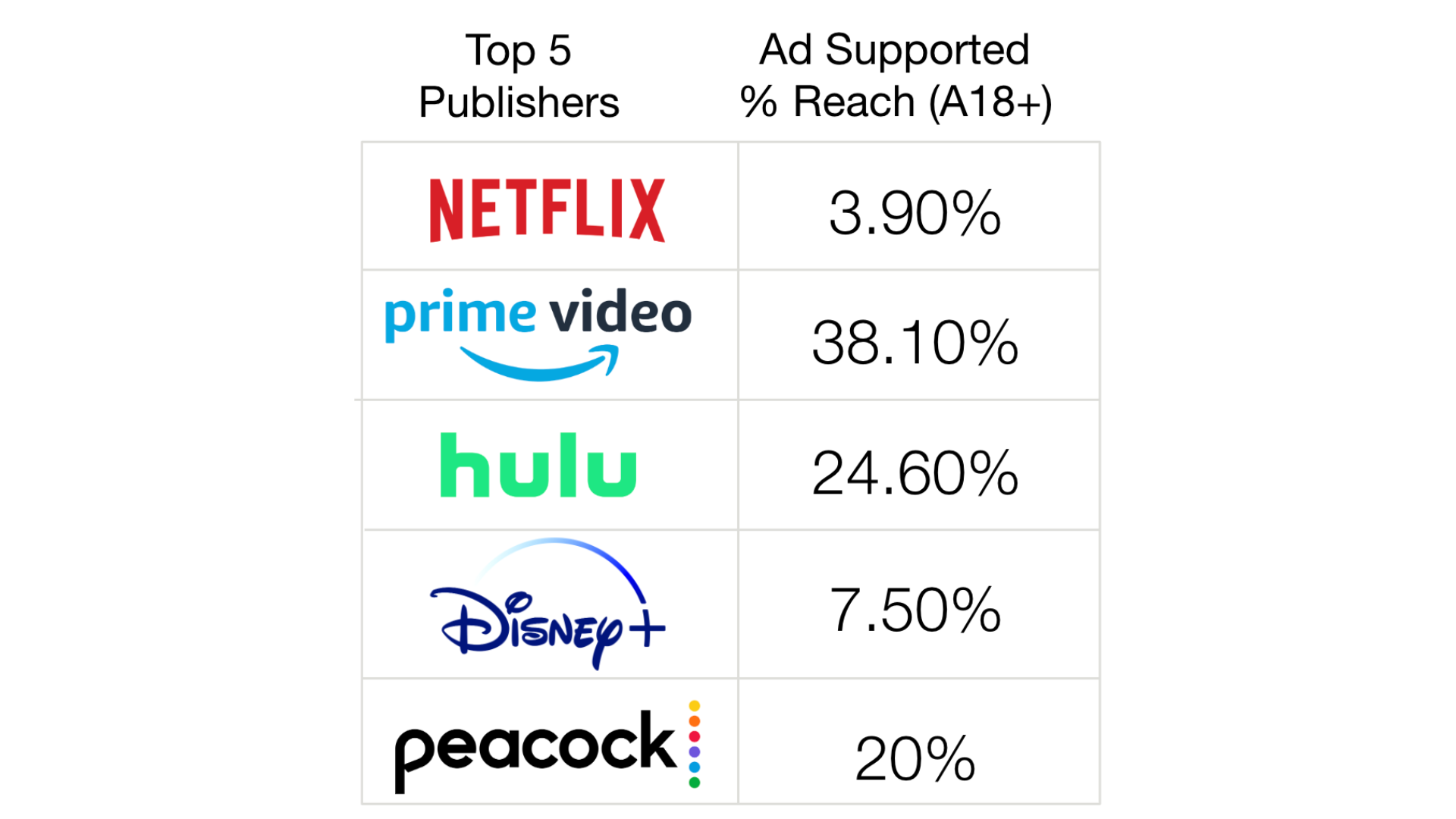 While more people have CTV devices, what percent of the population can you actually reach through CTV ads? Here’s a look at the top 5 CTV subscriptions’ ad supported reach: