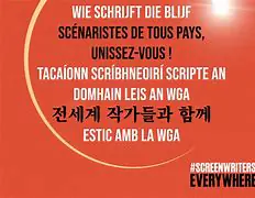 Badged ‘Screenwriters Everywhere,’ writers and protestors from almost two-dozen countries will march later to show support for their American counterparts, who put their pens down on May 2.